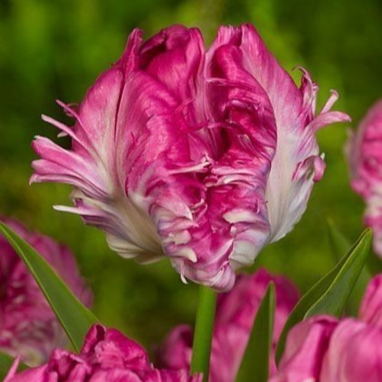 Представляем вашему вниманию тюльпан “Супер Пэррот” – сорт, который поражает своей необычной формой и изысканностью. Этот тюльпан словно прилетел из тропических стран, его крупные цветки с белыми лепестками и зелёными прожилками, а также сильно волнистыми и изрезанными краями, напоминают экзотические птичьи перья. “Супер Пэррот” – это выбор для тех, кто ценит оригинальность, стремится создать в саду неповторимую атмосферу и готов удивляться красоте и разнообразию природы.